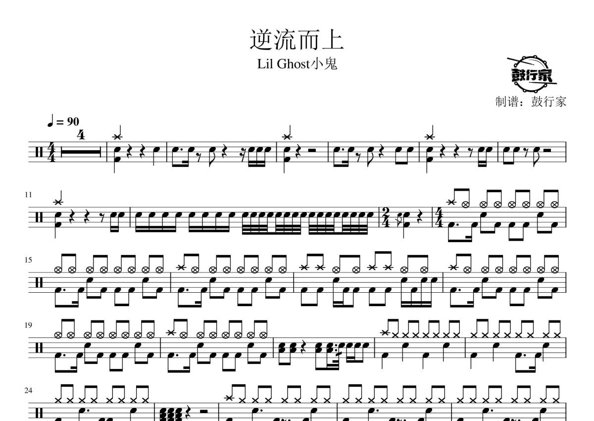 Lil Ghost小鬼《逆流而上》鼓谱 - 架子鼓谱