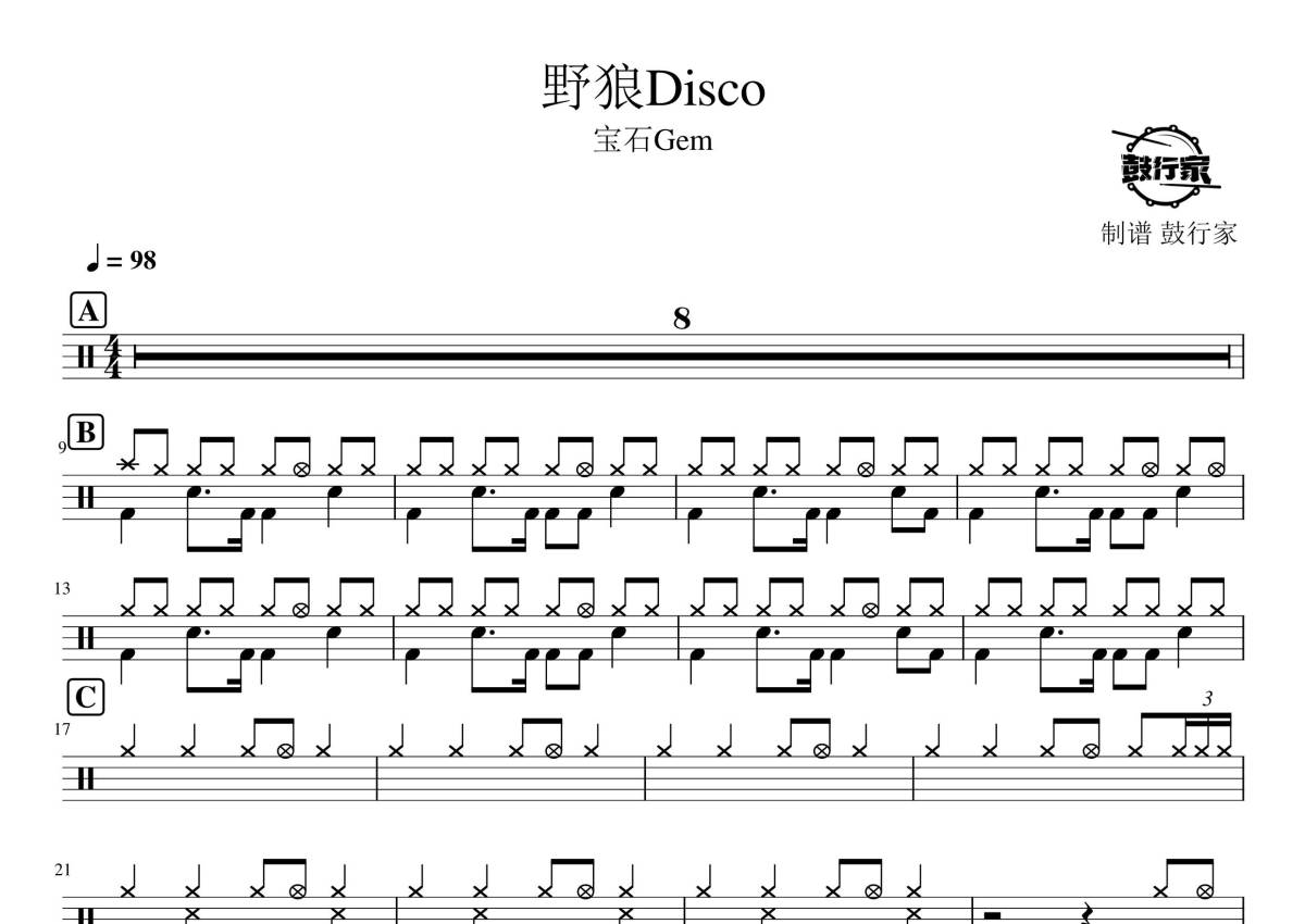 宝石Gem《野狼disco》鼓谱 - 架子鼓谱