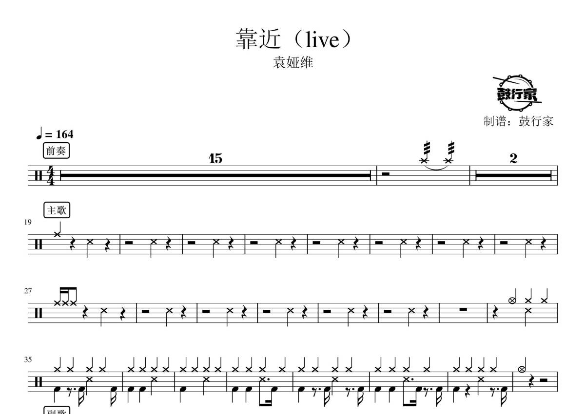 袁娅维《靠近》鼓谱 - 架子鼓谱 - live