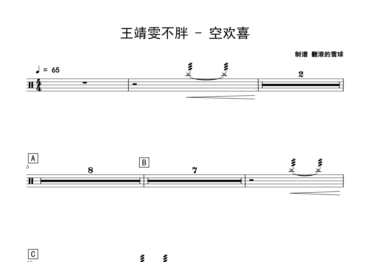 王靖雯不胖《空欢喜》鼓谱 - 架子鼓谱