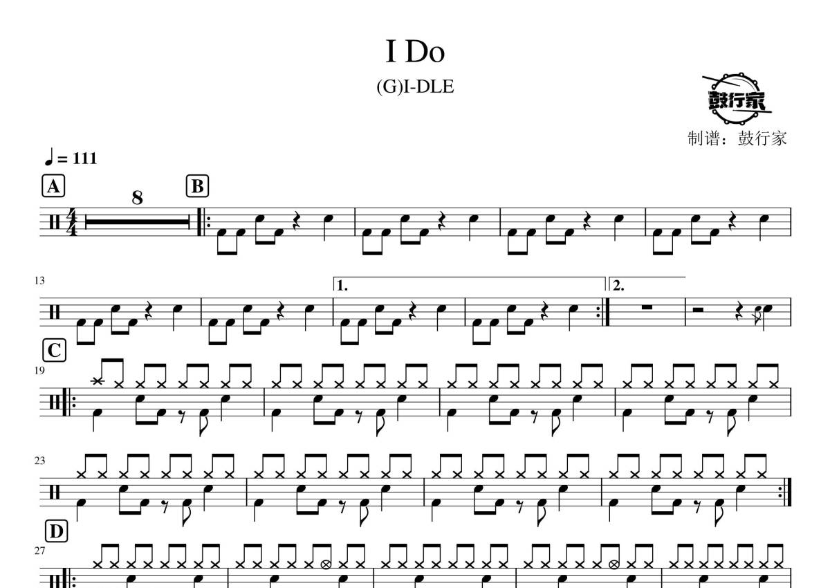 (G)I-DLE《I DO》鼓谱 - 架子鼓谱