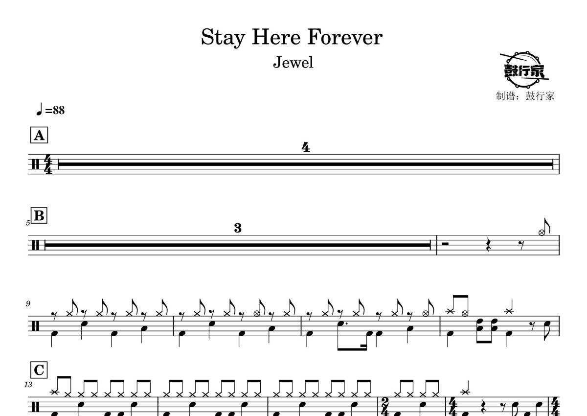Jewel《Stay Here Forever》鼓谱 - 架子鼓谱