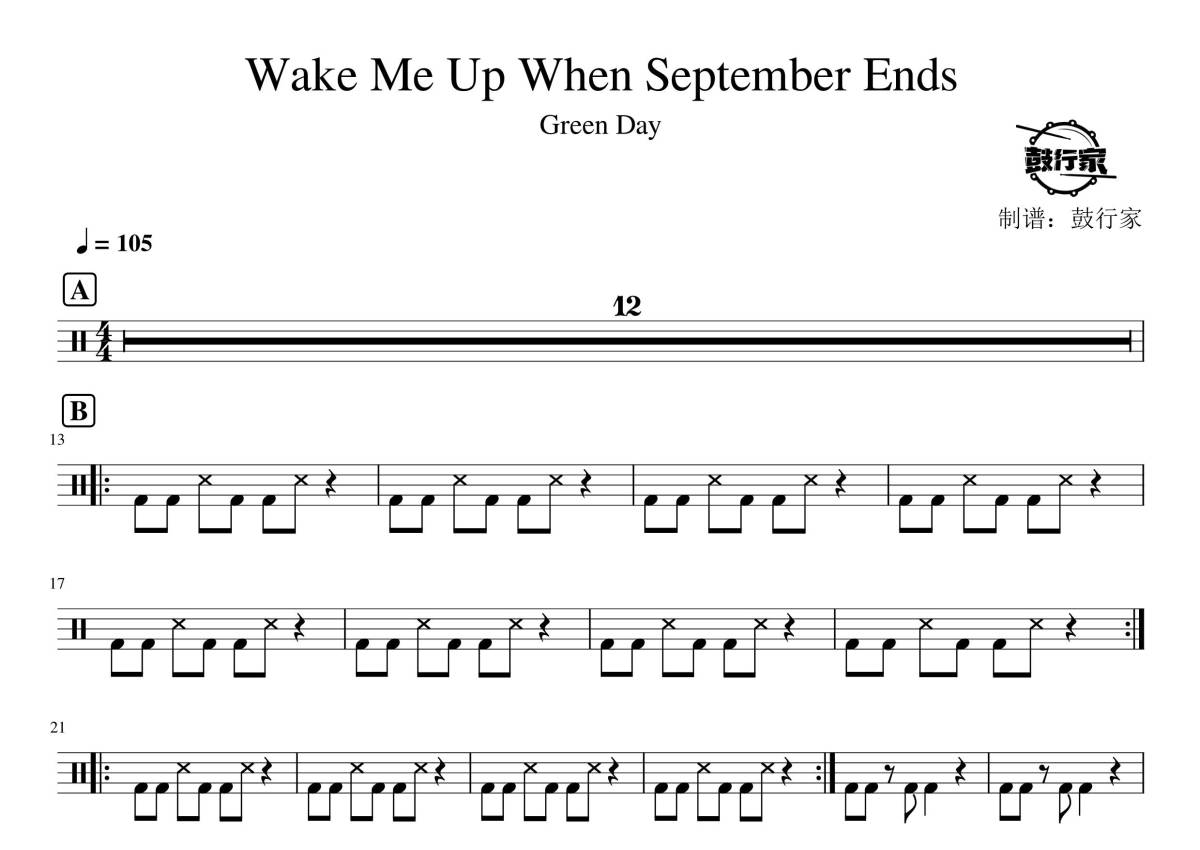 Green Day《Wake Me Up When September Ends》鼓谱 - 架子鼓谱