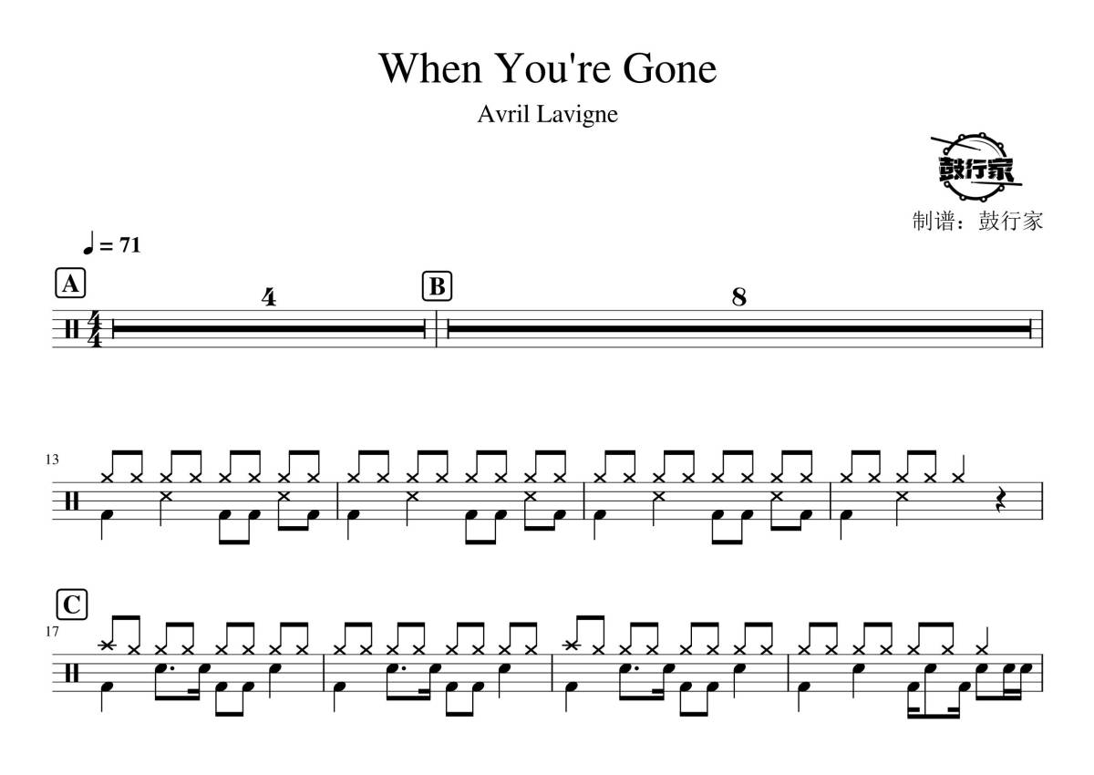 艾薇儿《When You're Gone》鼓谱 - 架子鼓谱