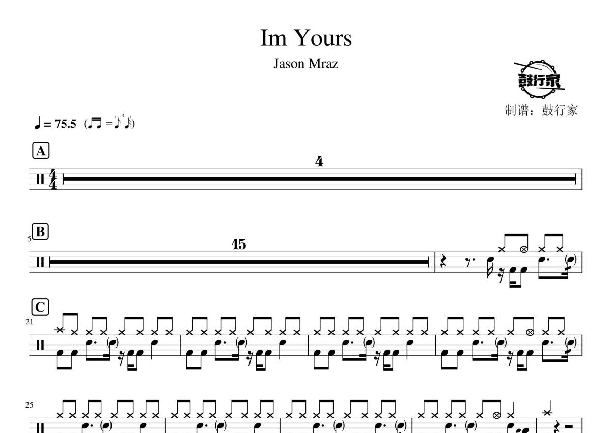 jason mraz《im yours》鼓谱 - 架子鼓谱