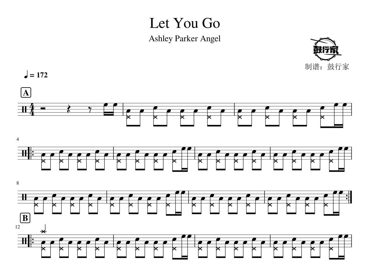 Ashley Parker Angel《let you go》鼓谱 - 架子鼓谱