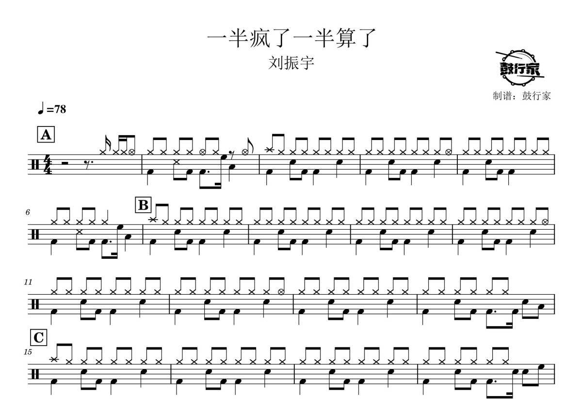 刘振宇《一半疯了一半算了》鼓谱 - 架子鼓谱