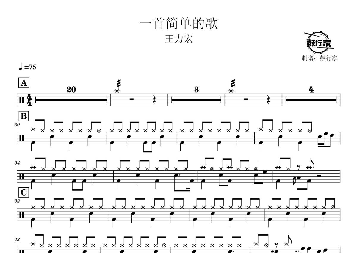 王力宏《一首简单的歌》鼓谱 - 架子鼓谱