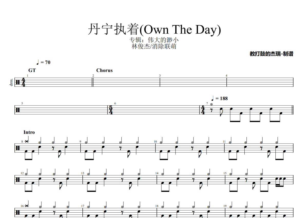 林俊杰/消除联萌《丹宁执着(Own The Day)》鼓谱 - 架子鼓谱