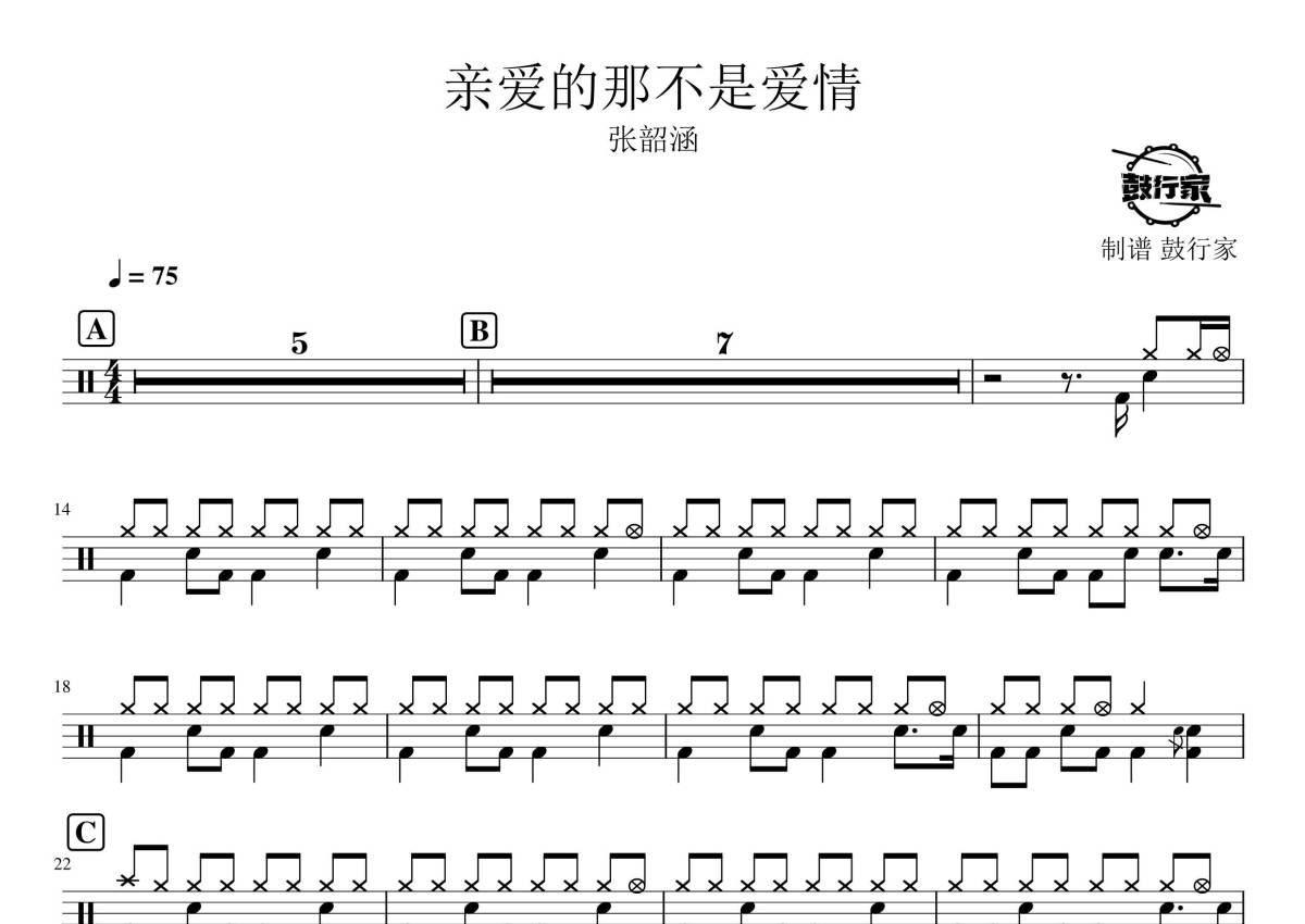 张韶涵《亲爱的那不是爱情》鼓谱 - 架子鼓谱