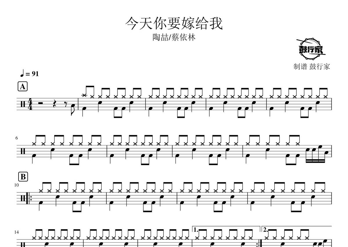 陶喆/蔡依林《今天你要嫁给我》鼓谱 - 架子鼓谱