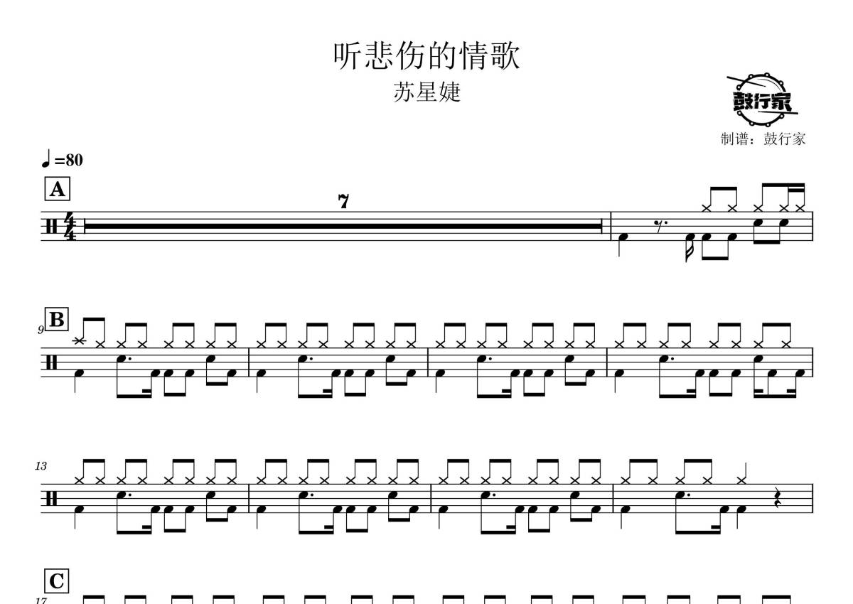 苏星婕《听悲伤的情歌》鼓谱 - 架子鼓谱