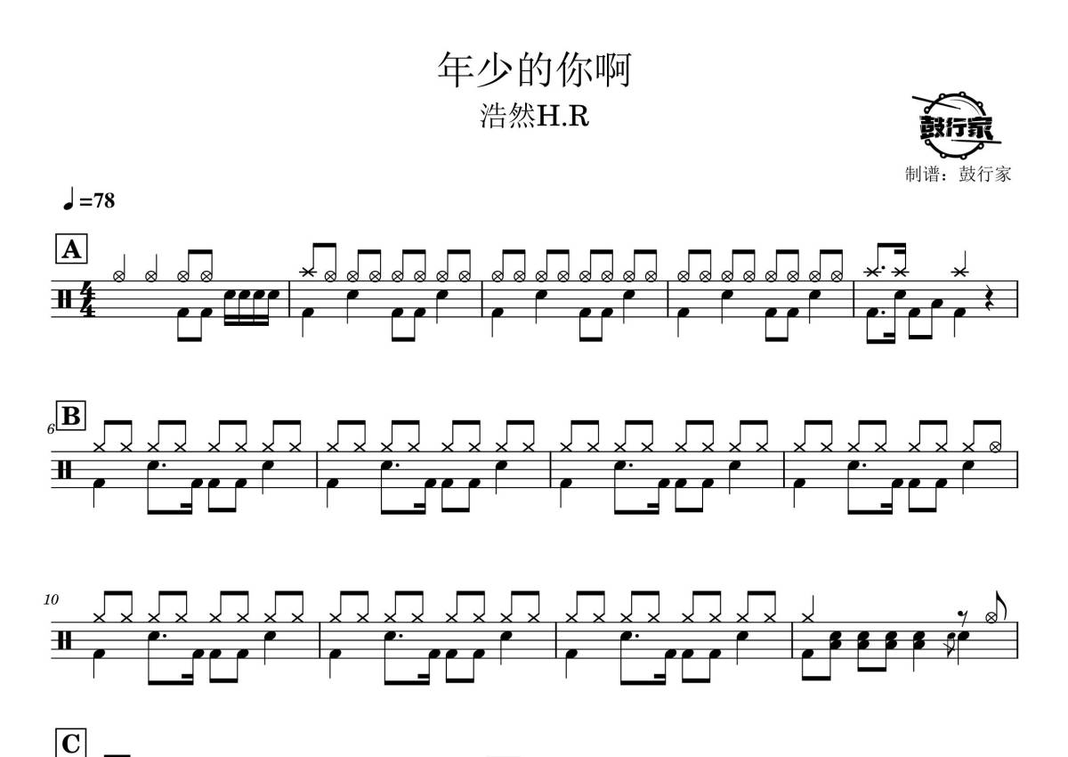 浩然H.R《年少的你啊》鼓谱 - 架子鼓谱