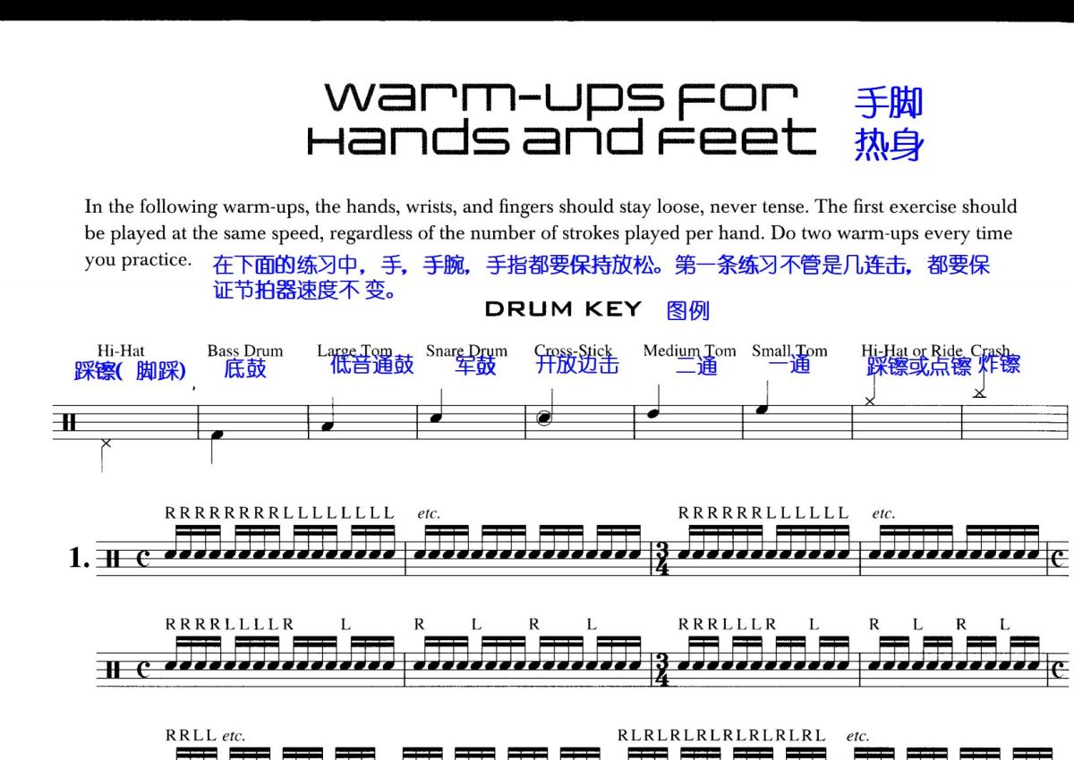 基本功练习《手脚热身》鼓谱 - 架子鼓谱