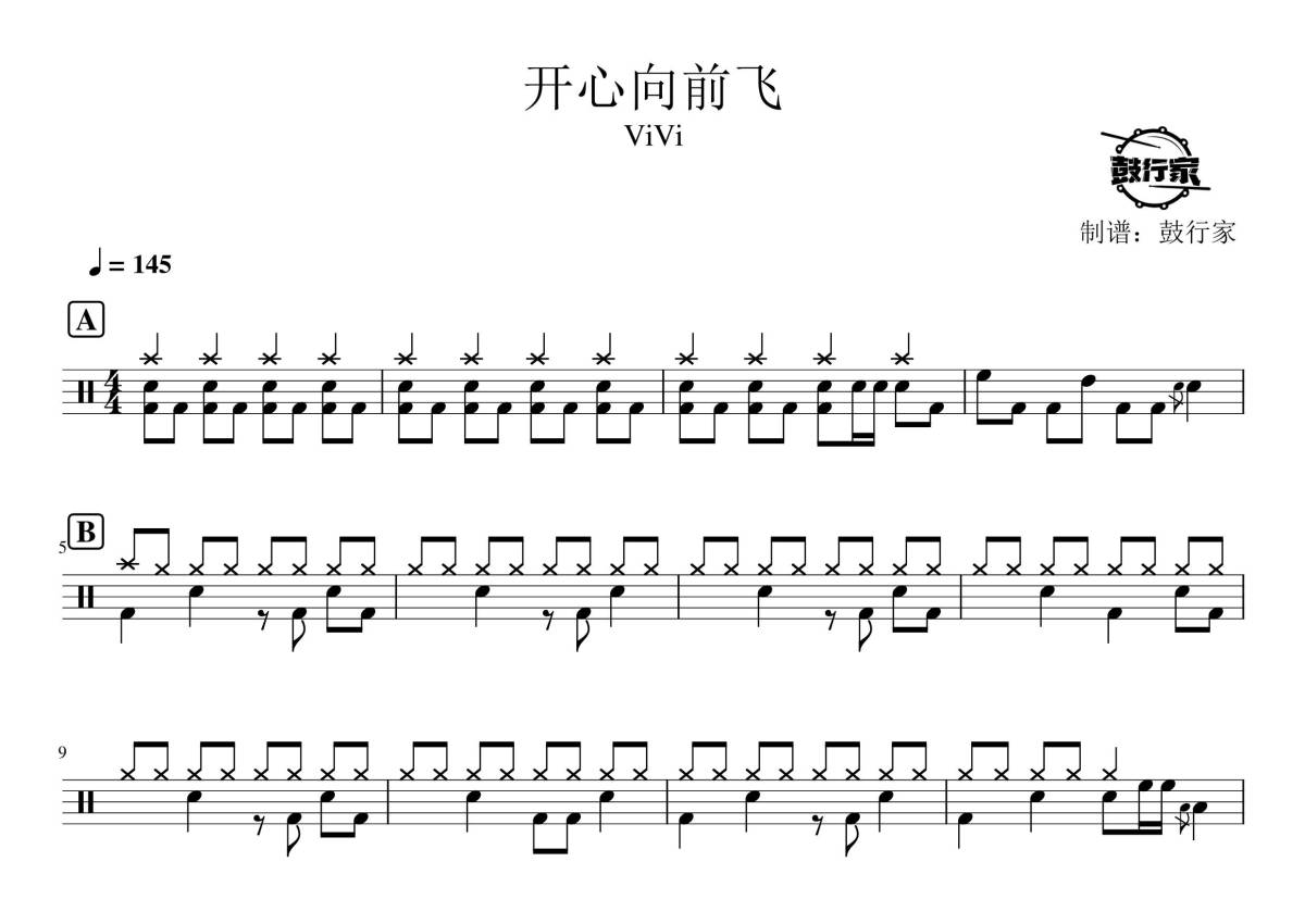 vivi《开心向前飞》鼓谱 - 架子鼓谱