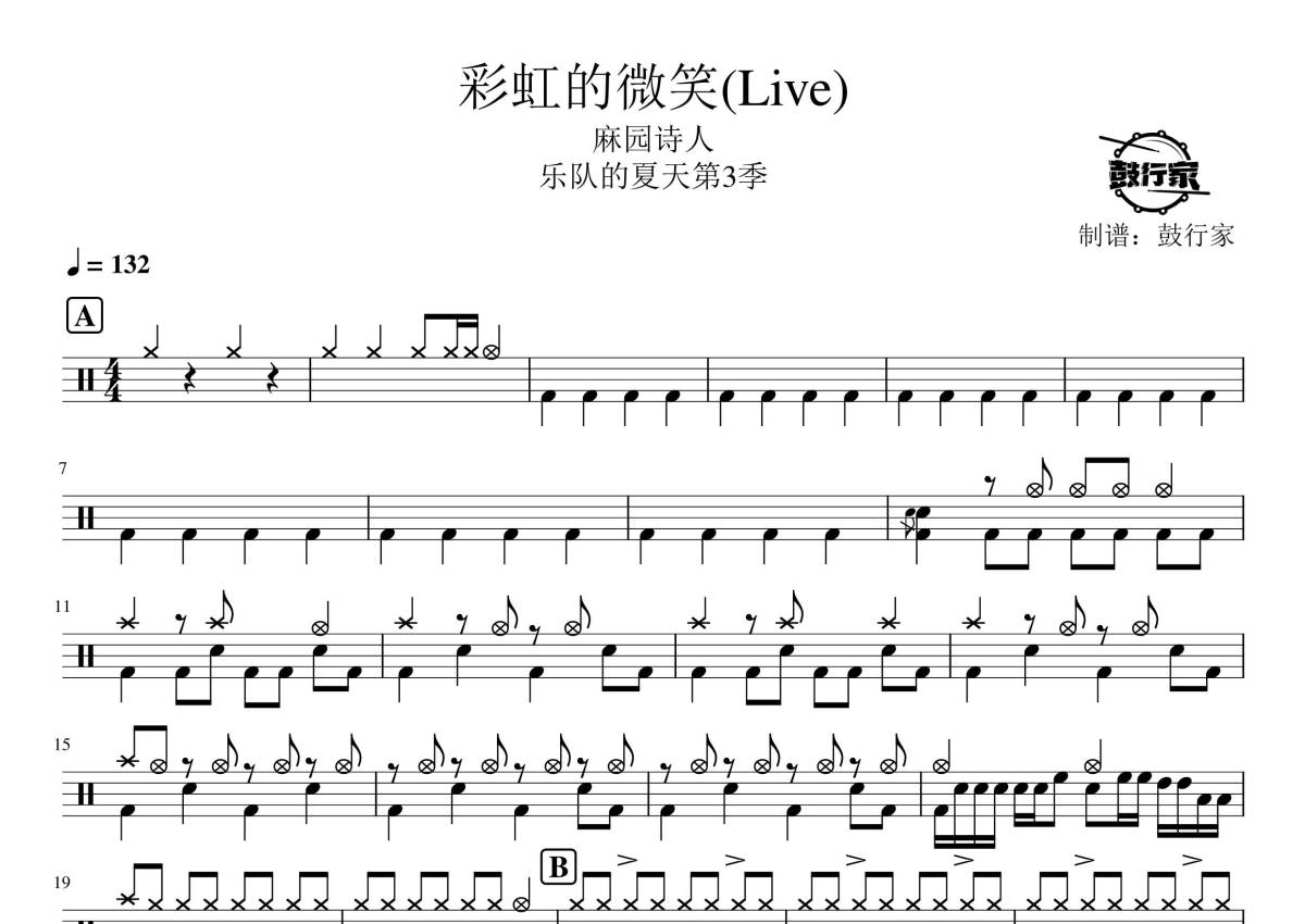 麻园诗人《彩虹的微笑live》鼓谱 - 架子鼓谱