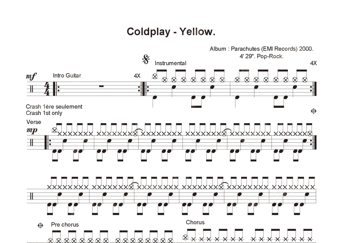 Coldplay《Yellow》鼓谱 - 架子鼓谱