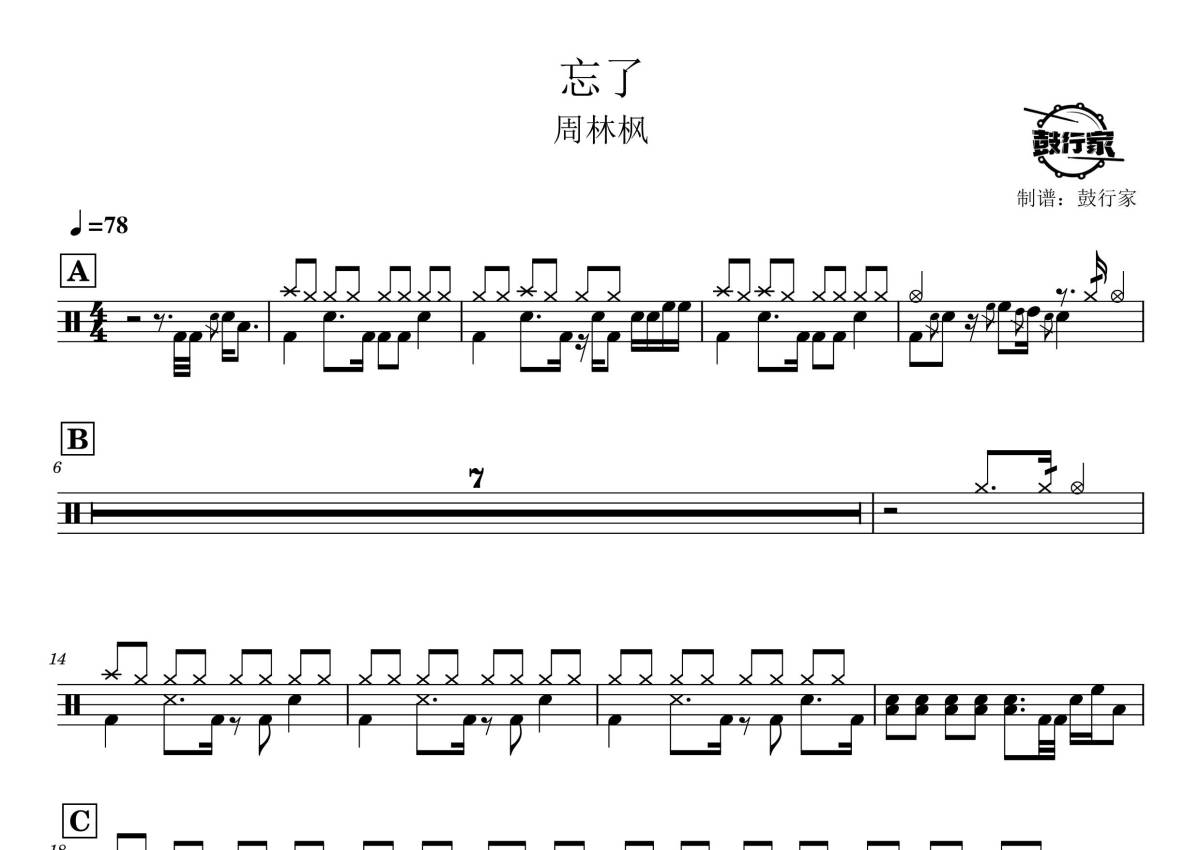 周林枫《忘了》鼓谱 - 架子鼓谱