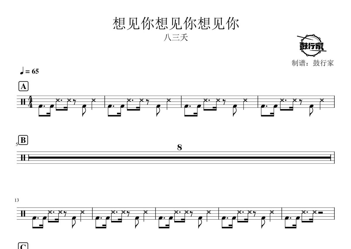 八三夭《想见你想见你想见你》鼓谱 - 架子鼓谱