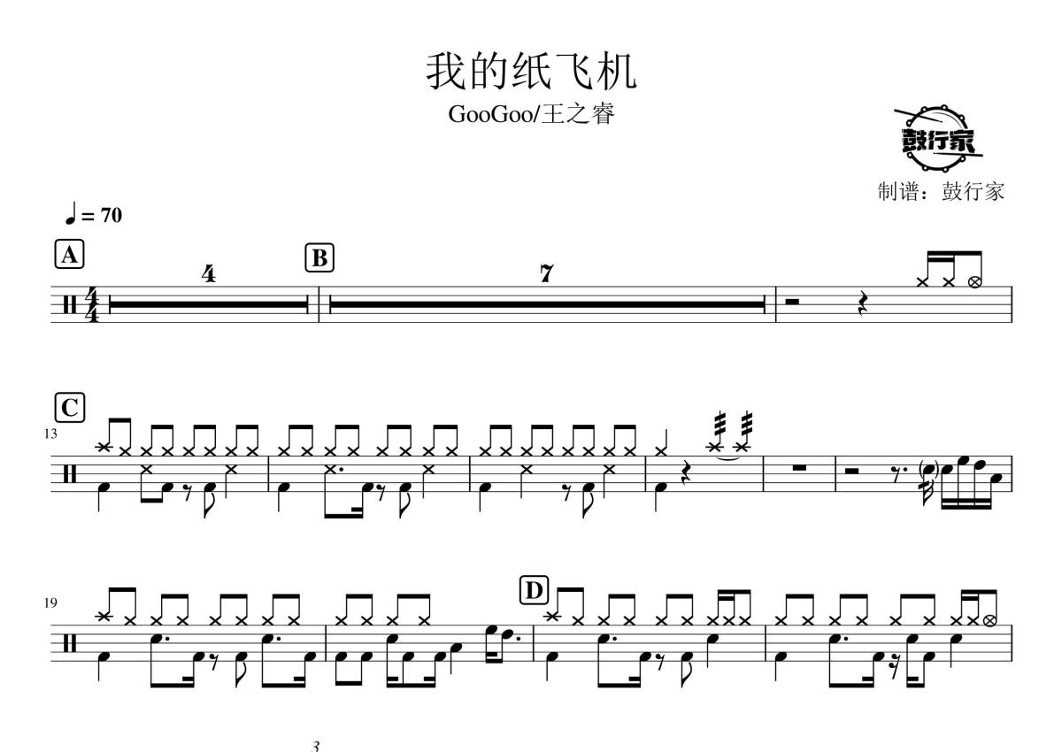 GooGoo/王之睿《我的纸飞机》鼓谱 - 架子鼓谱