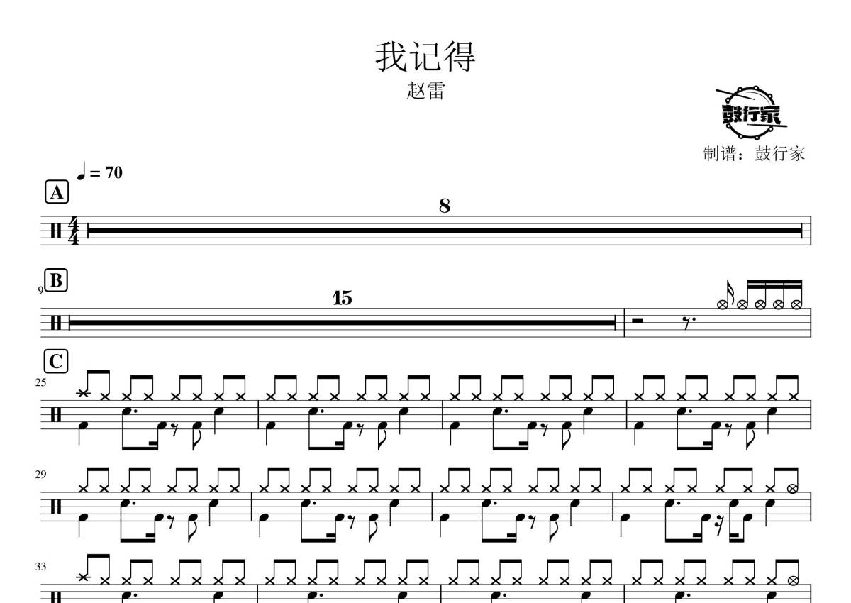赵雷《我记得》鼓谱 - 架子鼓谱