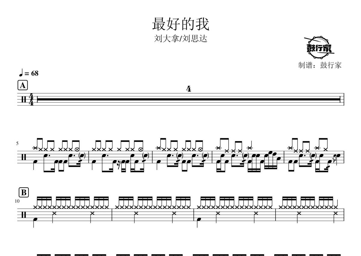刘大拿/刘思达《最好的我》鼓谱 - 架子鼓谱