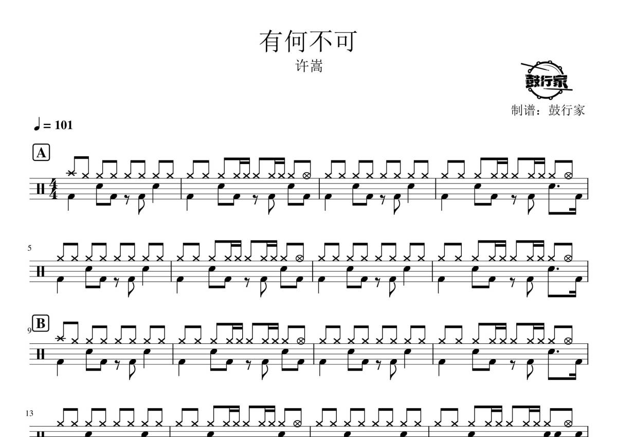 许嵩《有何不可》鼓谱 - 架子鼓谱