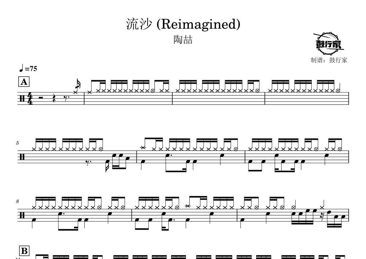 《流沙 (Reimagined)》是陶喆演唱的一首歌曲,拍号为4/4拍,这份鼓谱共有三张高清图谱,图谱由 @鼓行家 编配上传,图谱使用五线谱编配,使用这份流沙 (Reimagined)架子鼓谱,你将能够轻松地敲打出这首陶喆的流沙 (Reimagined),快来尝试吧。