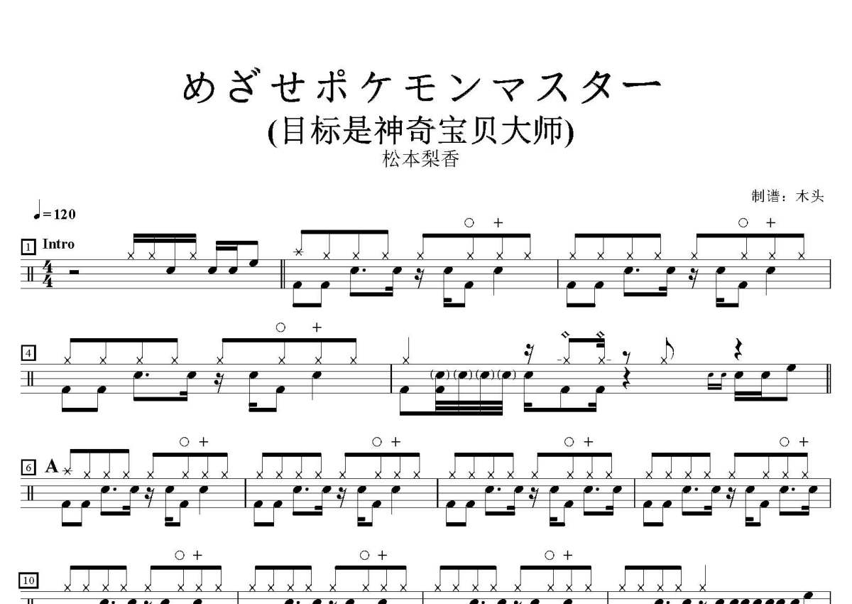 《めざせポケモンマスター》是松本梨香演唱的一首歌曲,这份鼓谱共有四张高清图谱,图谱由 @打鼓谱 编配上传,图谱使用五线谱编配,使用这份めざせポケモンマスター架子鼓谱,你将能够轻松地敲打出这首松本梨香的めざせポケモンマスター,快来尝试吧。歌曲名:めざせポケモンマスター,歌手名:松本梨香 (まつもと りか),专辑名:ポケモンTVアニメ主題歌 BEST OF BEST 1997-2012 (精灵宝可梦系列动漫主题曲精选 1997-2012)。