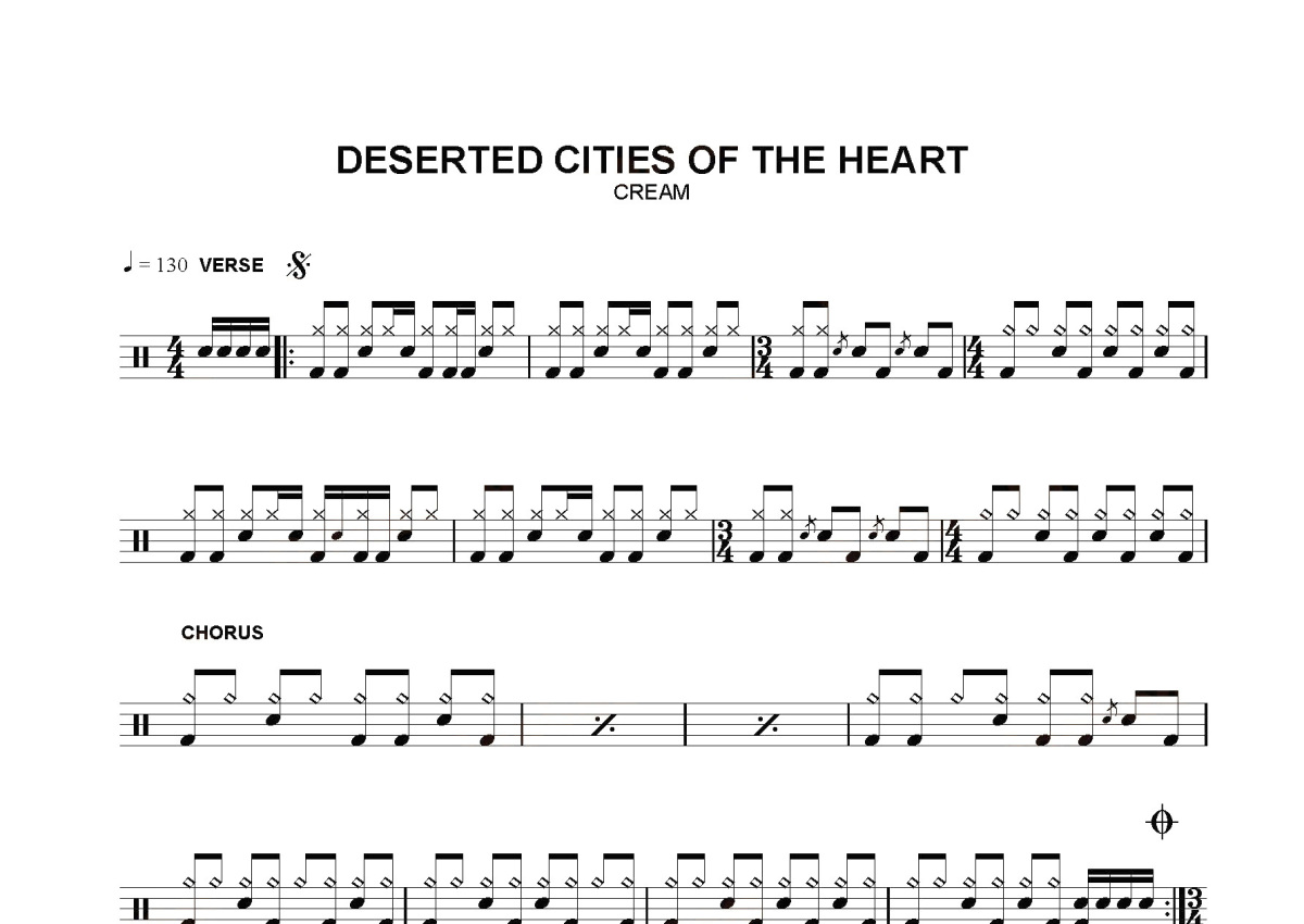 《deserted cities of the heart》是cream演唱的一首歌曲,这份鼓谱共有两张高清图谱,图谱由 @打鼓谱 编配上传,图谱使用五线谱编配,使用这份deserted cities of the heart架子鼓谱,你将能够轻松地敲打出这首cream的deserted cities of the heart,快来尝试吧。《deserted cities of the heart》现场版。Cream,原香港儿童组合,由三位成员Renee、Carpo及Hilda组成,成立于2004年,出版过三张专辑,代表作为《不可没友》、《孖公仔》等,现已解散。其中只有Renee(李蕴)留在娱乐圈发展,现已推出个人专辑以及写真集。