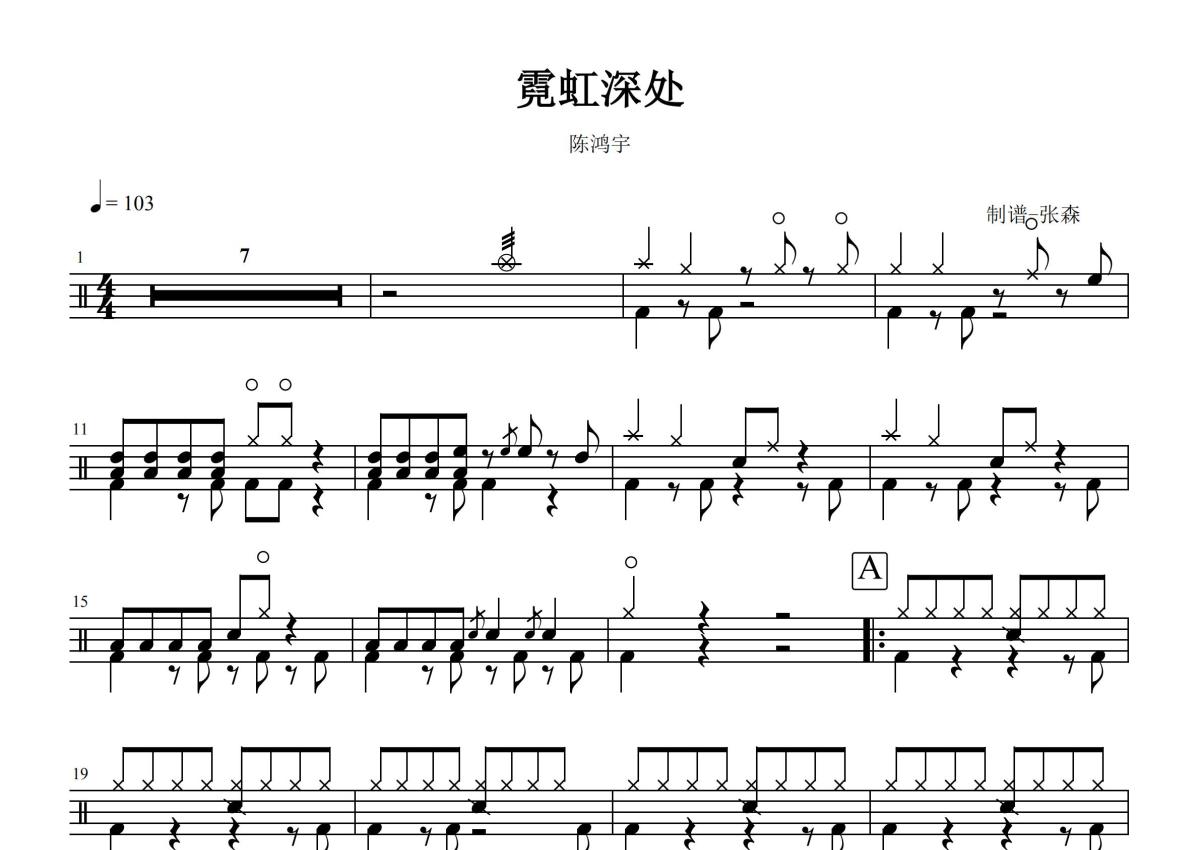陈鸿宇《霓虹深处》鼓谱 - 架子鼓谱
