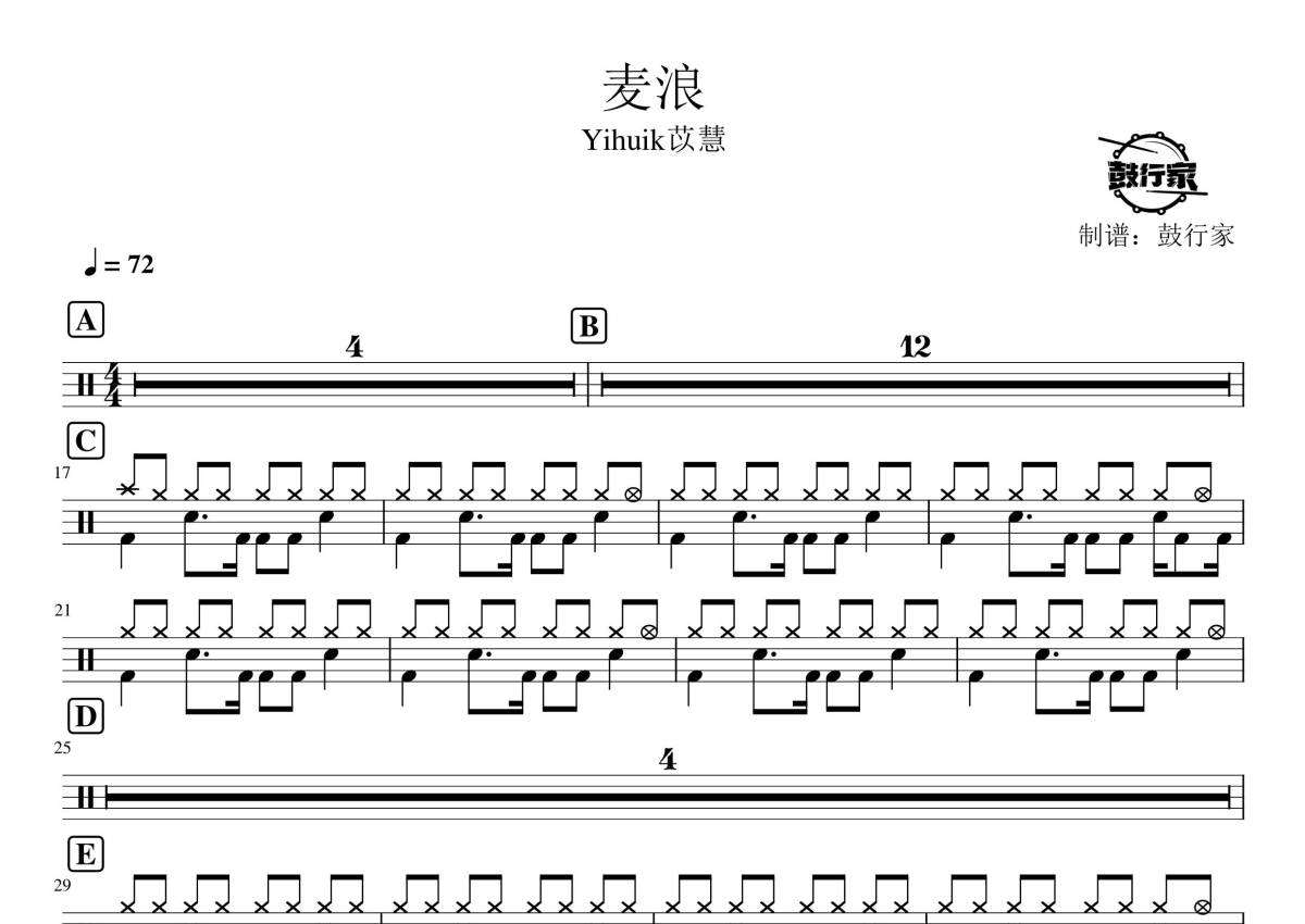 yihuik苡慧《麦浪》架子鼓谱