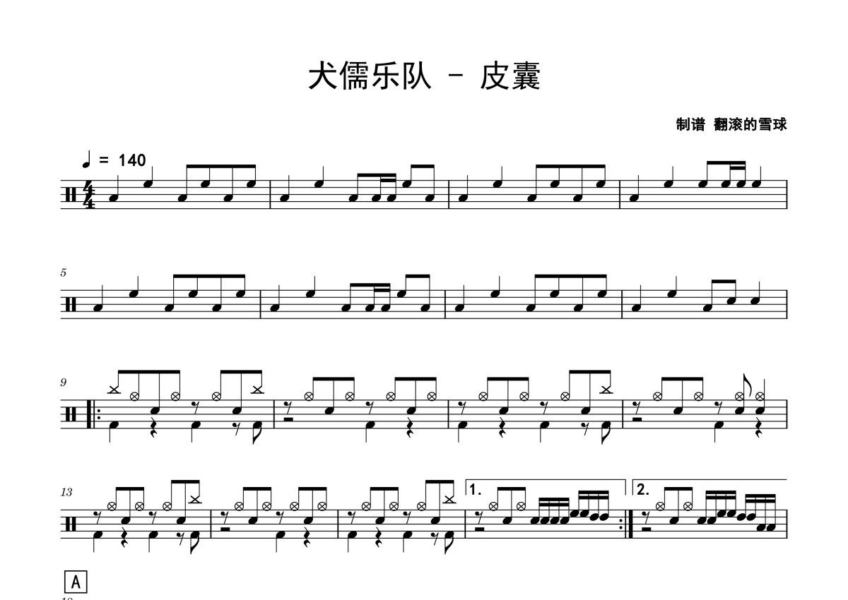 《皮囊》是犬儒乐队演唱的一首歌曲,拍号为4/4拍,歌曲速度为每分钟140拍,这份架子鼓谱共有三张高清图谱,图谱由 @老虎不说谎 编配上传,图谱使用五线谱编配,使用这份皮囊架子鼓谱,你将能够轻松地敲打出这首犬儒乐队的皮囊,快来尝试吧。