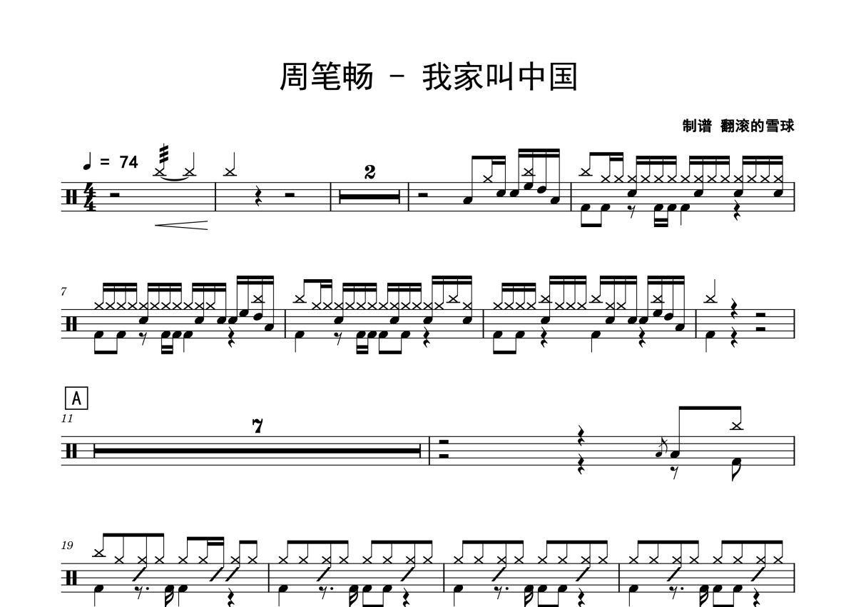 周笔畅《我家叫中国》架子鼓谱