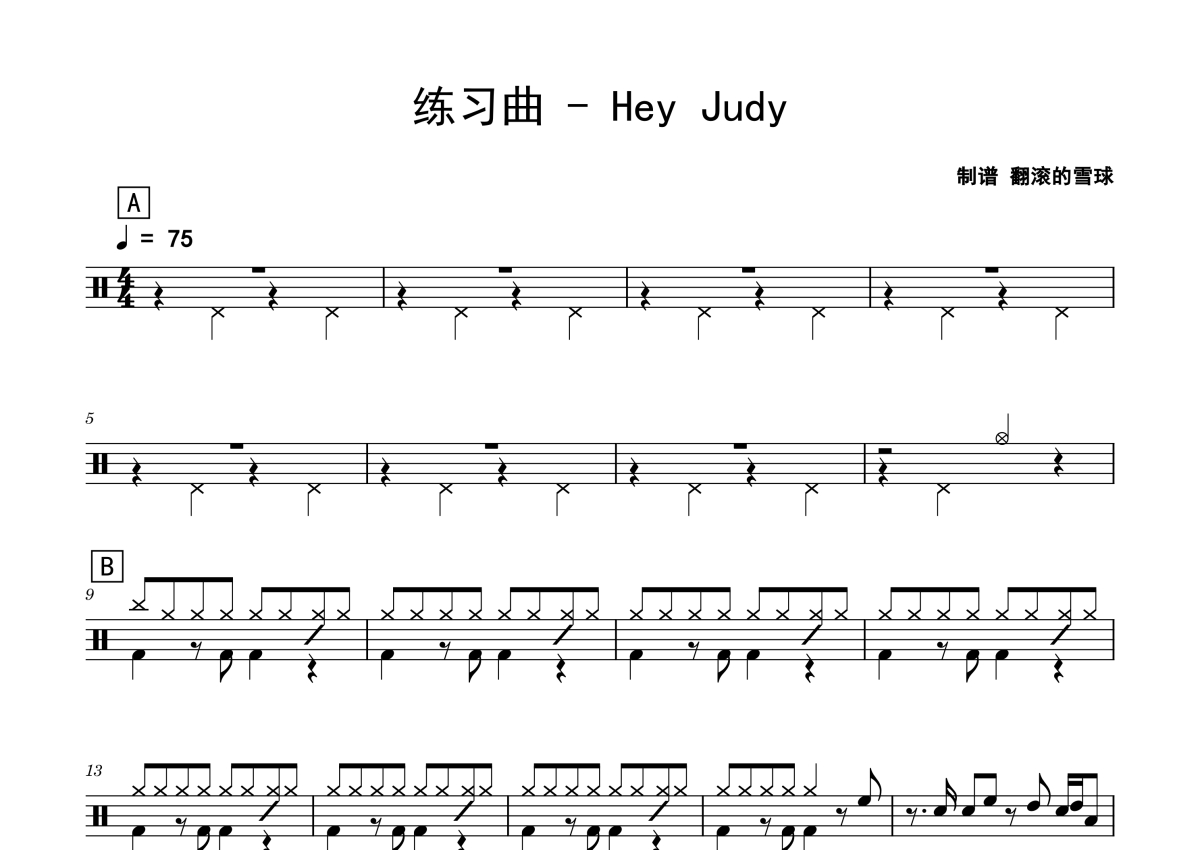 练习曲《Hey Judy》架子鼓谱