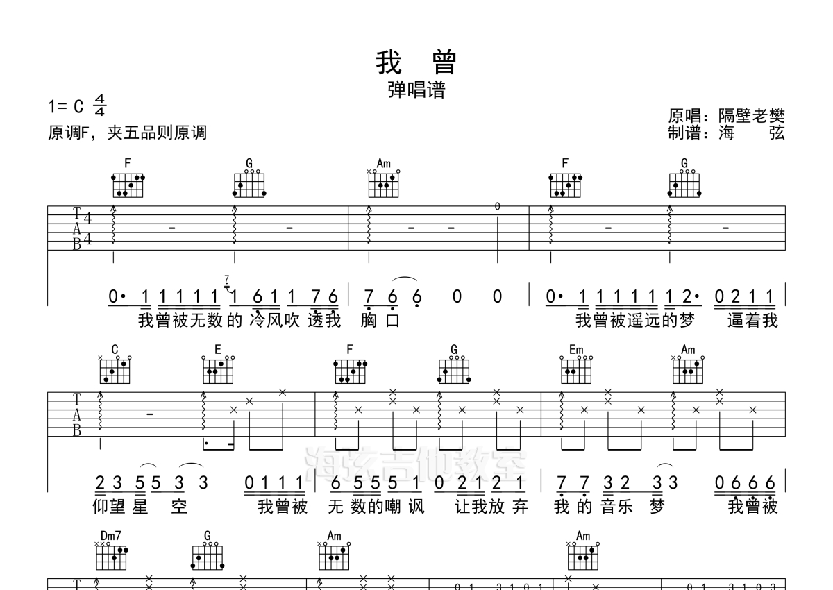 我曾吉他谱 - 隔壁老樊 - C调弹唱六线谱