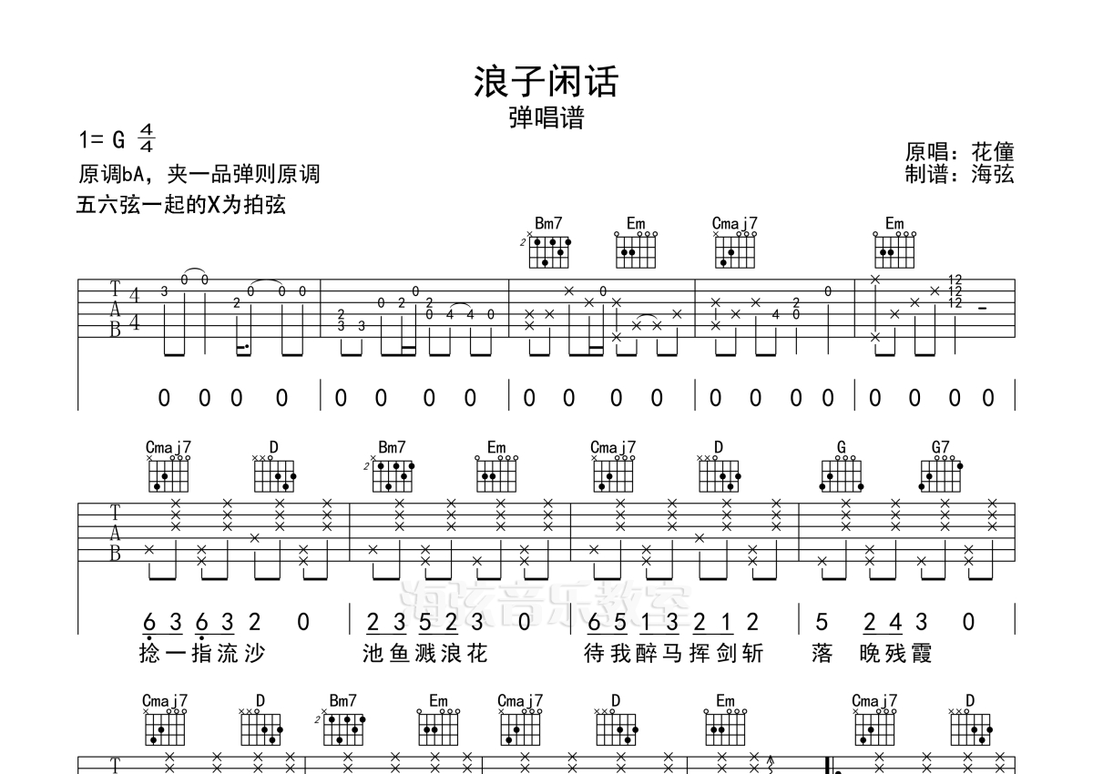 浪子闲话吉他谱 - 花僮 - G调弹唱六线谱
