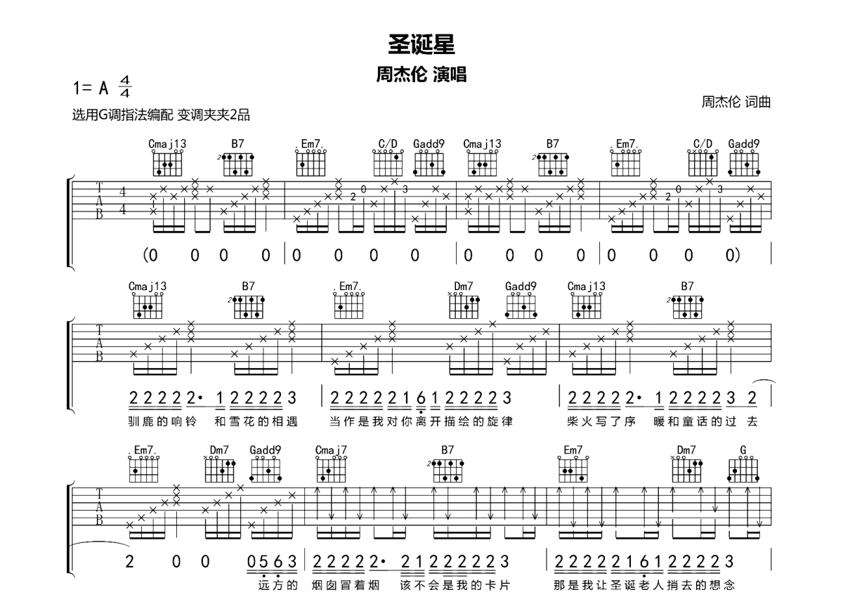 圣诞星吉他谱 - 周杰伦 - G调弹唱六线谱