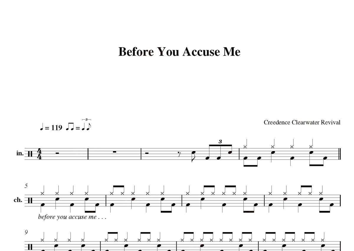 Creedence Clearwater Revival《Before You Accuse Me》鼓谱 - 架子鼓谱