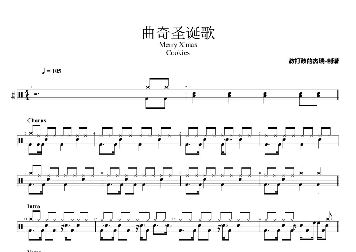 Cookies《曲奇圣诞歌》架子鼓谱 - Merry X'mas