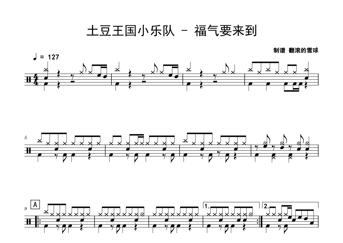 土豆王国小乐队《福气要来到》架子鼓谱