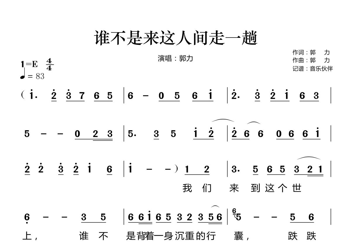 谁不是来这人间走一趟简谱 - 郭力演唱