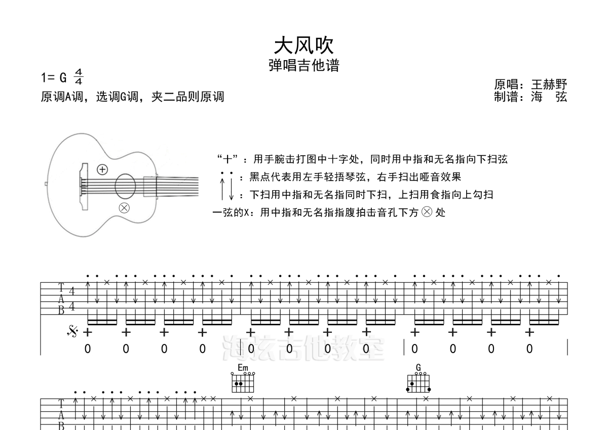 王赫野/刘惜君《大风吹》吉他谱 - G调弹唱六线谱