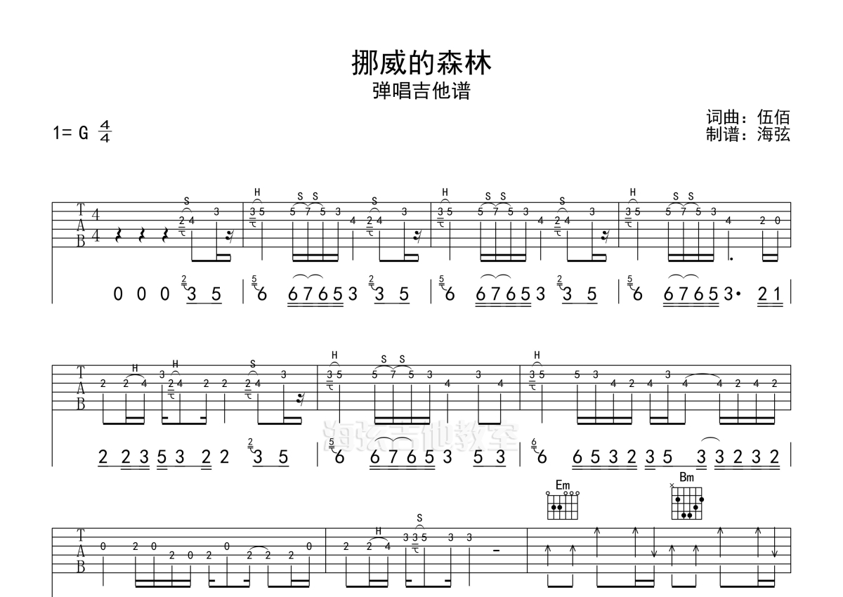 挪威的森林吉他谱 - 伍佰 - G调弹唱六线谱