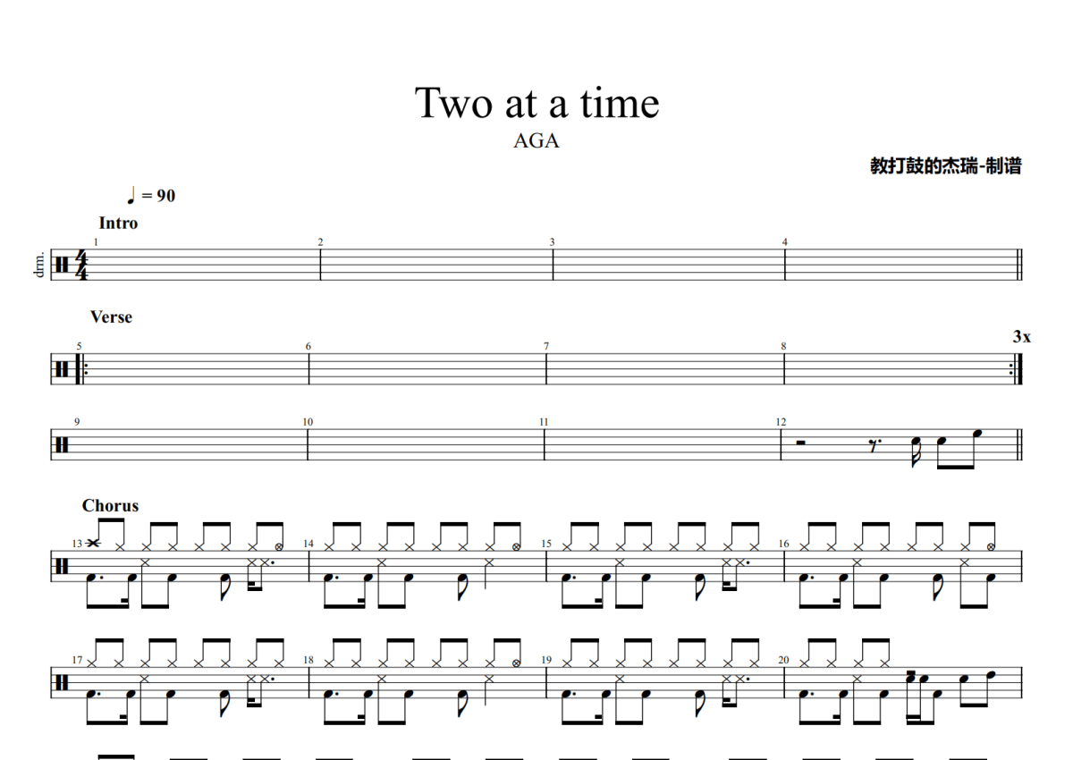 AGA《Two at a time》架子鼓谱
