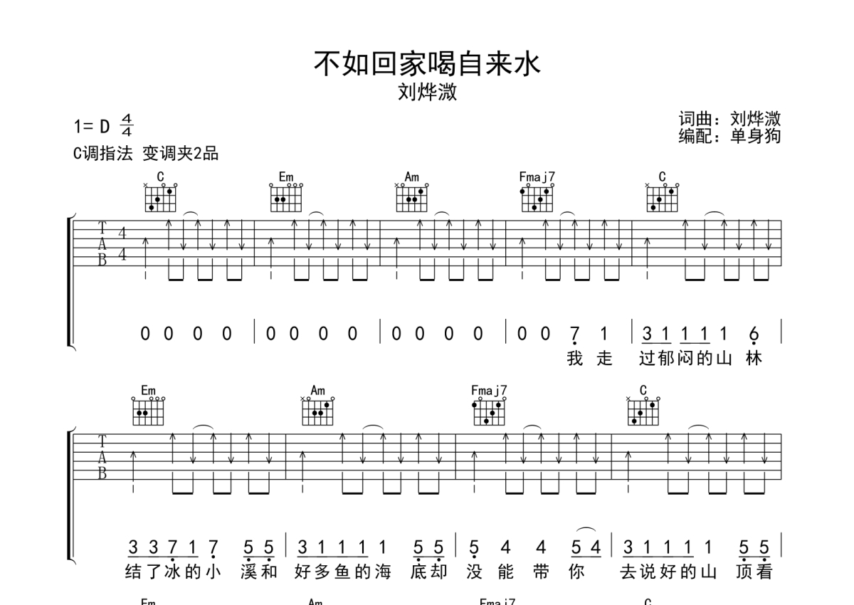 不如回家喝自来水吉他谱 - 刘烨溦_单身狗编配