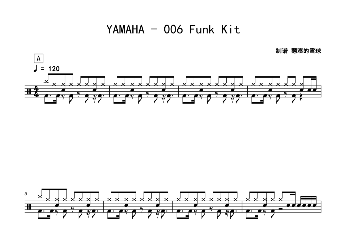 《006 Funk Kit》是YAMAHA演唱的一首歌曲,拍号为4/4拍,歌曲速度为每分钟120拍,这份架子鼓谱共有一张高清图谱,图谱由 @老虎不说谎 编配上传,图谱使用五线谱编配,使用这份006 Funk Kit架子鼓谱,你将能够轻松地敲打出这首YAMAHA的006 Funk Kit,快来尝试吧。