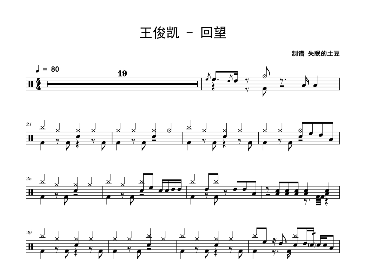 王俊凯《回望》架子鼓谱