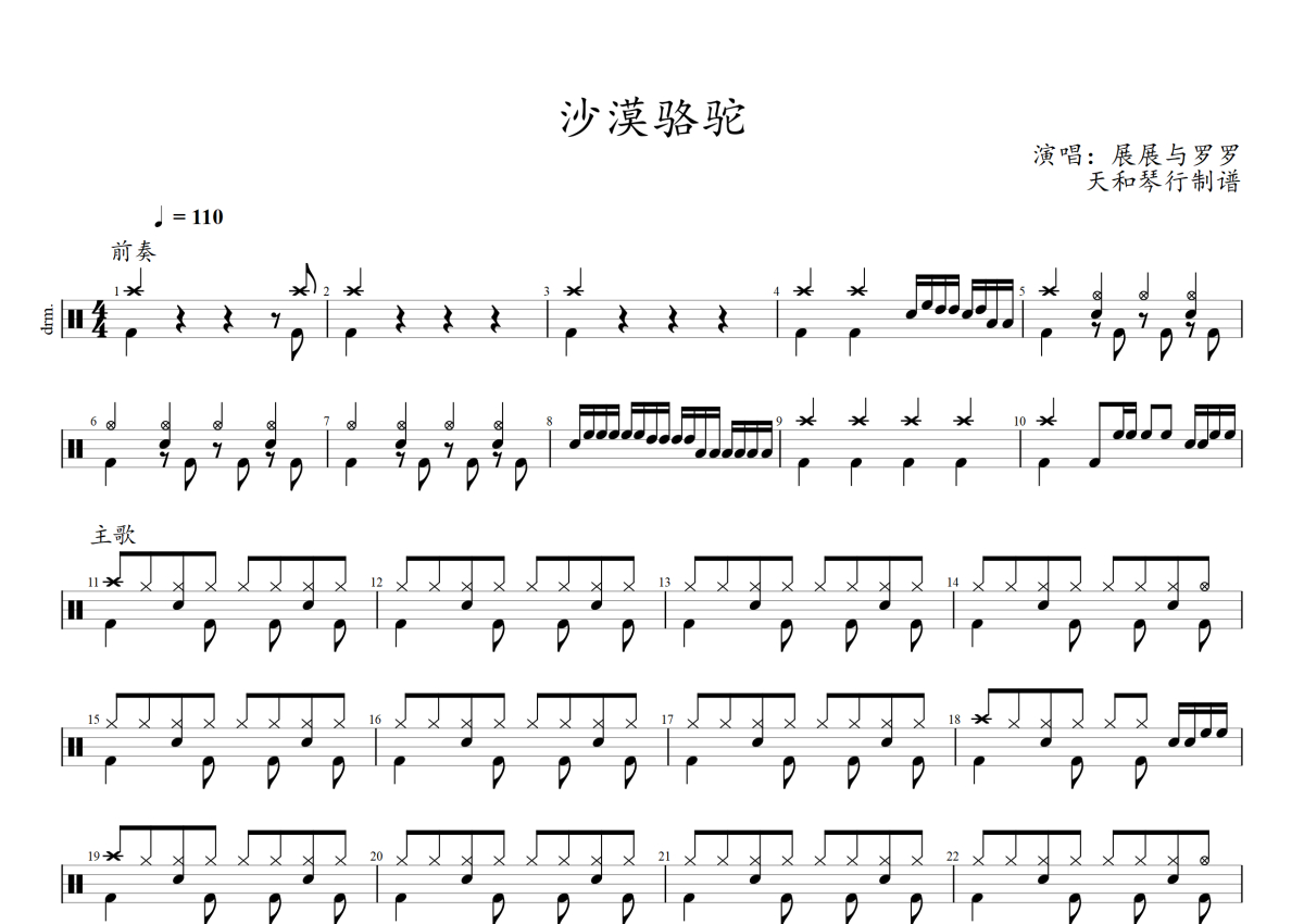 展展与罗罗《沙漠骆驼》架子鼓谱