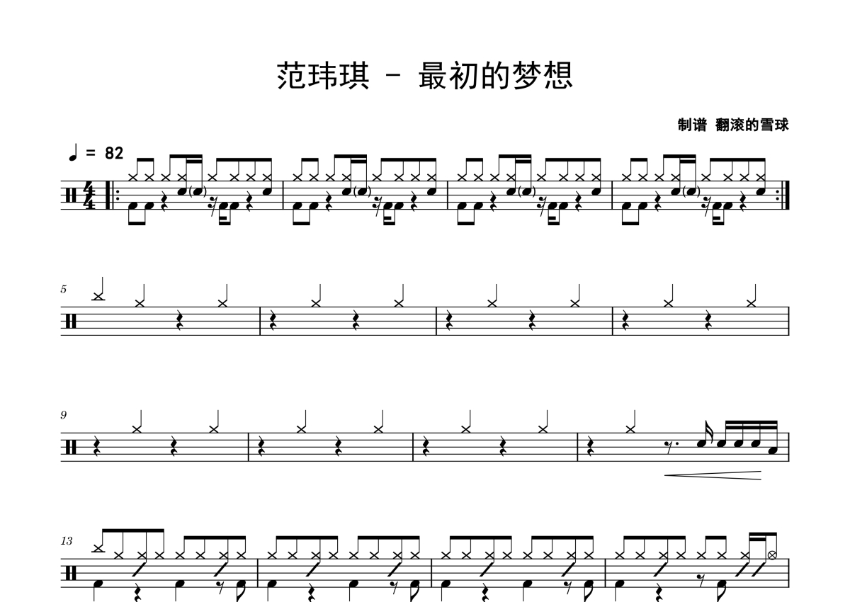 范玮琪《最初的梦想》架子鼓谱